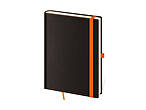 Die Oberfläche des Notizbuchs ist aus universellem Material auf Basis veredelten Papiers, welches dank seiner feinen Struktur an Kunstleder erinnert. Das Notizbuch verfügt ausserdem über ein Gummiband zum Verschliessen.